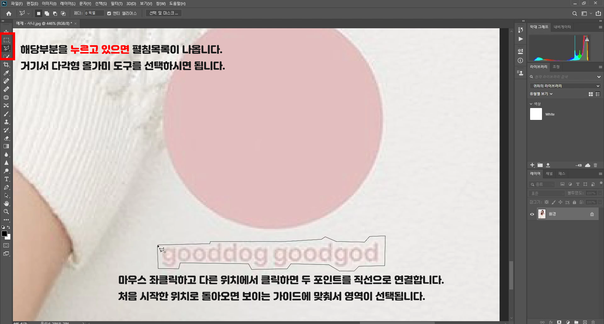 바로 사각형 영역 선택 밑에 있는 다각형 올가미 도구 입니다.