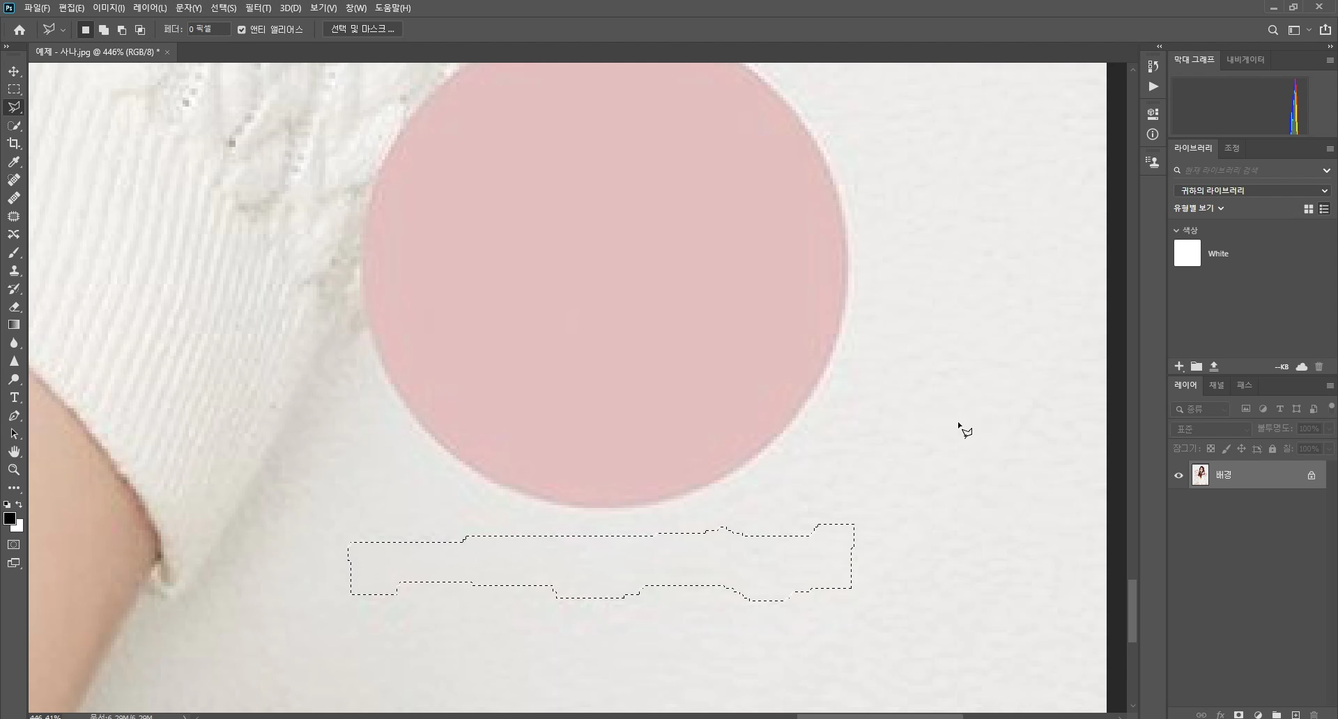 예시 사진에서 선택영역이 'A' 글자 중간을 지나간 것은 저 곳이 옷과 배경의 경계이기 때문에 저 사이로 선택영역을 지나가게 했습니다.
