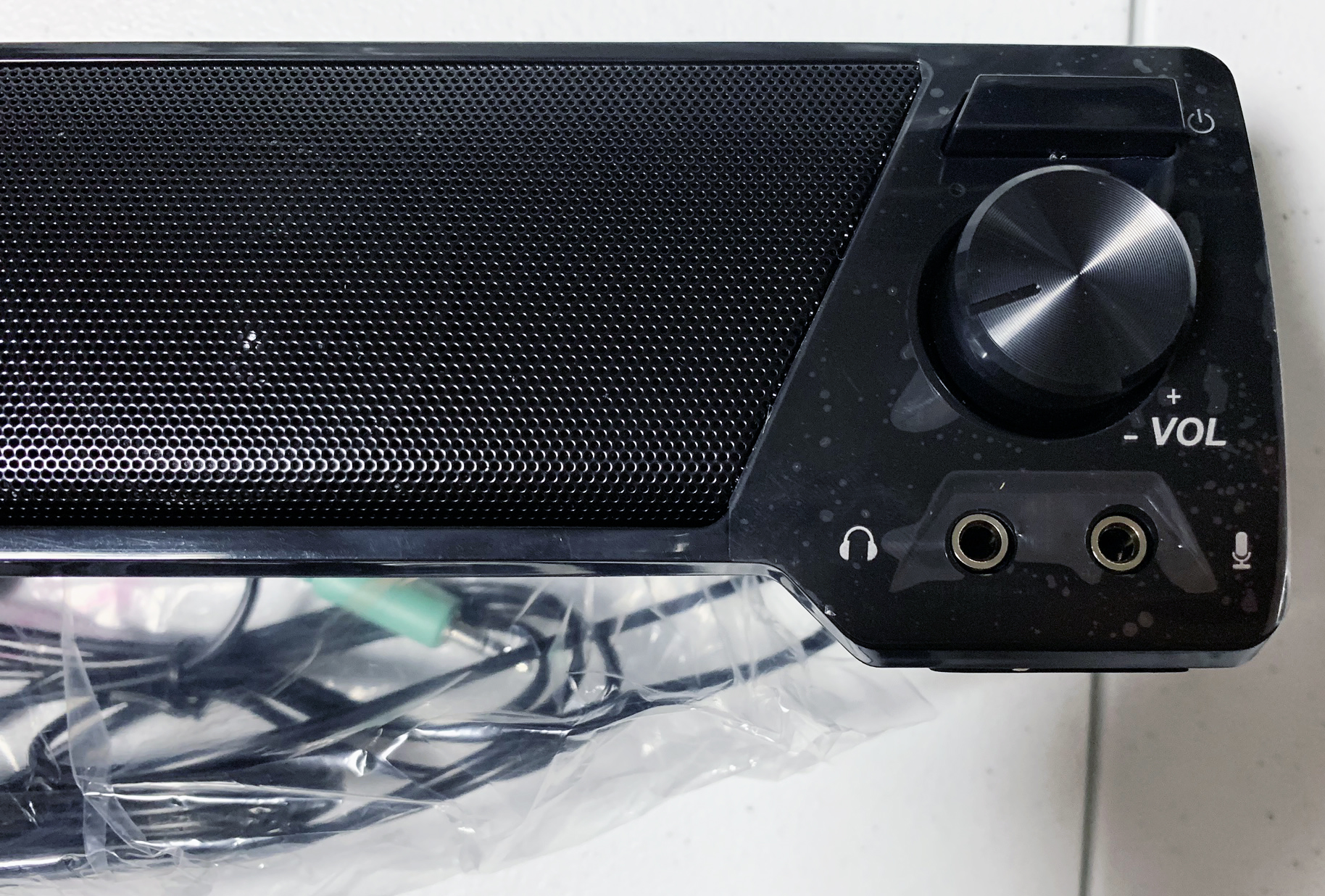 사운드 바 형태로 모니터 화면 밑에 두면 보기에도 좋고 전원버튼이 있어서 쉽게 쉽게 키고 끌 수 있습니다.
