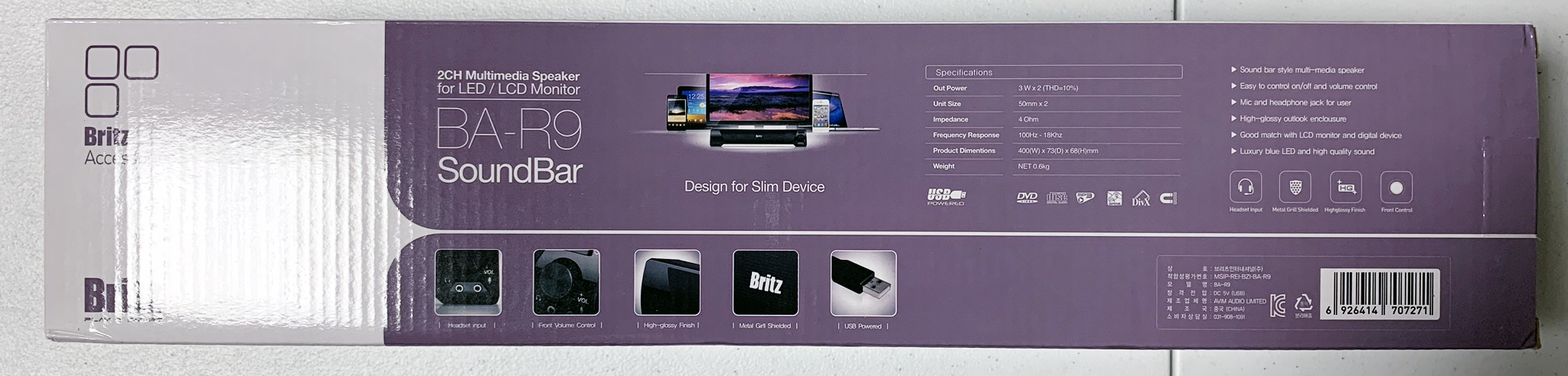 그때 이런 저런 사은품으로 받았던게 바로 이 브리츠 ba-r9 사운드 바입니다. 보통 온라인에서 핸드폰을 구매하면 가격대별로 이런저런 사은품을 고르게 하는데 저 같은 경우 무선충전기와 이 브리츠 사운드 바를 골랐습니다.