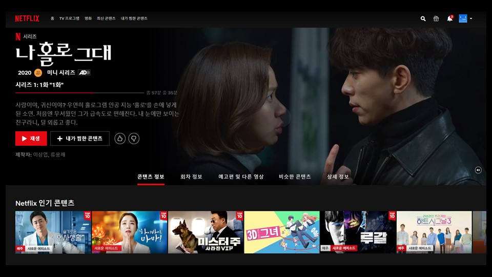넷플릭스 웹페이지 링크를 걸어 드리도록 하겠습니다. 로그인된 상태라면 아마 바로 보실 수 있을 거에요.