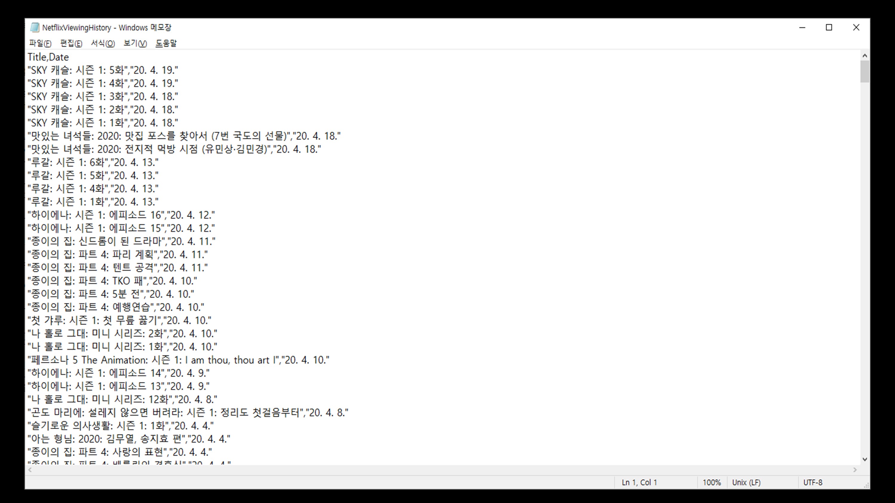 이 다운로드한 파일은 메모장에서 열어 주면 한글이 깨지지 않고 나옵니다.
