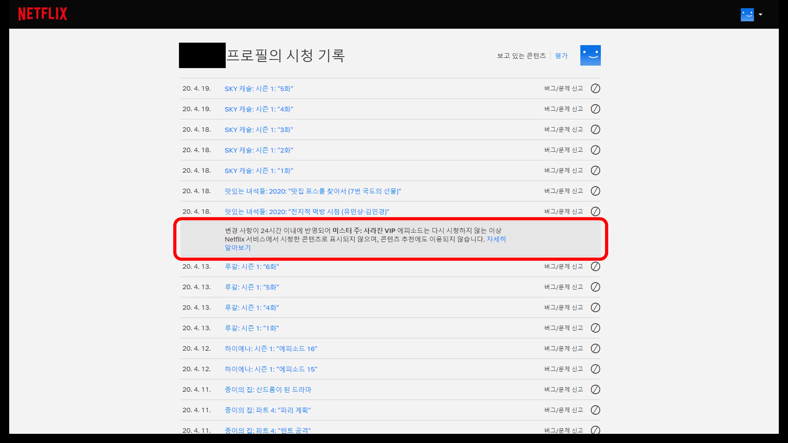 넷플릭스에서는 시청기록 숨기기로 표현하네요.