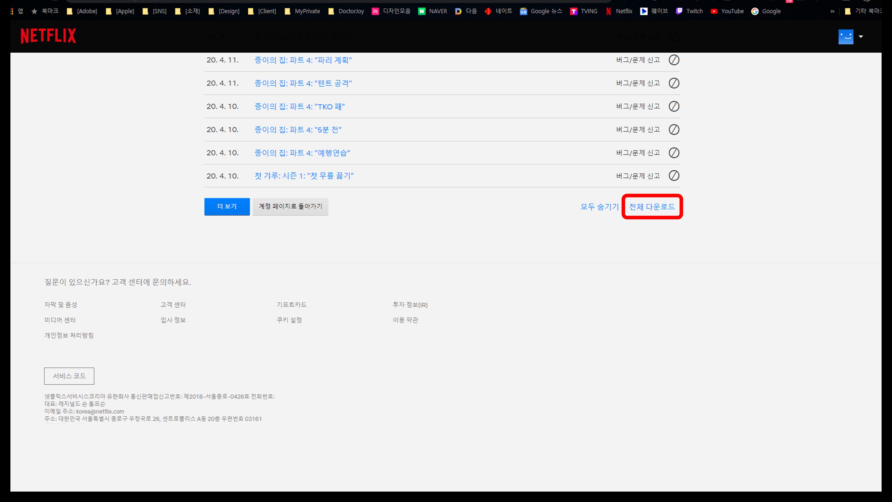 혹시 저처럼 '전부 지워지면 내가 본 프로그램이 기억이 안난다' , '나는 내가 본 프로그램을 기록하고 싶다'라고 생각하시면 모두 숨기기 옆에 있는 전체다운로드를 누르면 됩니다.