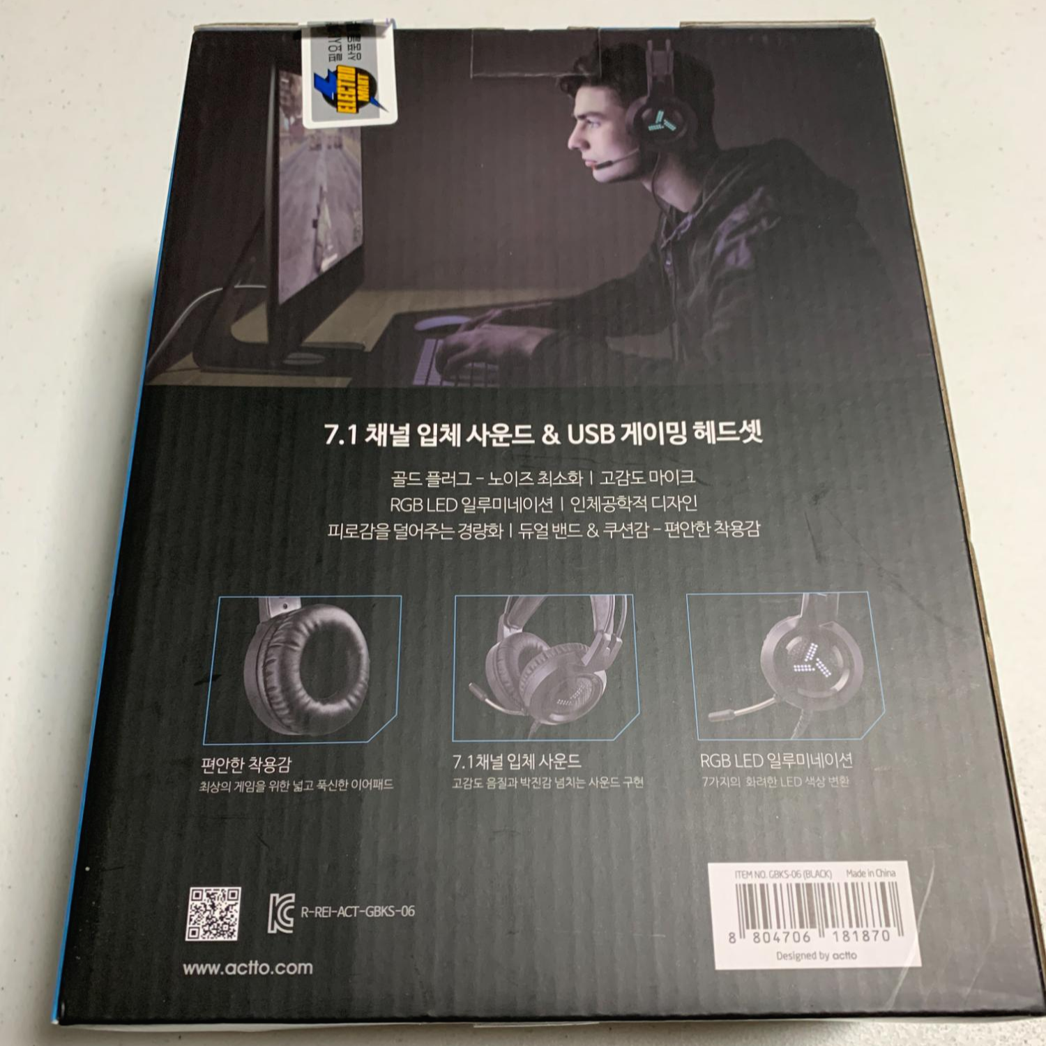 이 액토 킹덤 USB 게이밍 헤드셋을 구매하고 6개월이 지난 지금 매우 만족하고 있습니다. 3만원대 중반 헤드셋이지만 가볍고 편안한 착용감과 함께 7.1 채널의 사운드는 저한테 충분한 만족감을 주었습니다.